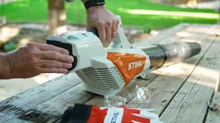 The BGA 86 battery-powered handheld blower gives end-users the power they need to take on tough blowing tasks. A brushless motor allows for quiet operation and an excellent power-to-weight ratio. Its well-balanced design and optimized controls make it easy to use for right-and left-handed users. The BGA 86 is a great option for pros as well as homeowners.