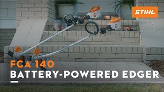 Enjoy the flexibility of professional-grade battery power without sacrificing performance with the STIHL FCA 140 edger. With a straight-shaft, a variable-speed trigger, and an adjustable depth wheel, you can control the speed you’ll need to cut through packed soil or create completely new edges. This weather resistant, reliable, edger is built with high-quality components like an onboard metal air filter, brushless motor, and the same shaft and gearbox as the gas-powered counterpart. The eco-friendly and quiet FCA 140 is a great option when working in noise-sensitive environments. As a pro-grade battery product, the FCA 140 is sure to be a welcome addition to your professional fleet of STIHL products.
