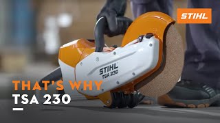 STIHL introduces another world’s first—a cut-off machine powered by 36-volt Lithium-Ion battery technology. The TSA 230 STIHL Cutquik® cut-off machine starts instantly and changes the game for the jobsite, delivering maneuverability and solid cutting performance in a lightweight, compact package. Its onboard water control helps suppress dust while a toolless wheel lock prevents wheel rotation when removing the wheel attachment bolt. Because it is battery powered, there is no air filter to maintain. The TSA 230 even provides great value—priced below its gasoline-powered counterpart. Groundbreaking innovation, grounded in quality engineering.