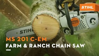 The MS 201 C-EM delivers high power and smart technology in a lightweight package. The added STIHL M-Tronic™ intelligent engine management system automatically adapts to changes in environmental factors such as fuel quality and altitude. The result is a reliable and fuel-efficient machine that performs optimally in a variety of conditions. In addition, the MS 201 C-EM features our STIHL Easy2Start™ system—making engine starting almost effortless. Farm and ranch jobs will be made easier with use of this well-balanced, low-vibration, and durable chainsaw.