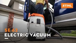 When you need professional cleaning power at home, plug in the STIHL SE 62 wet/dry vacuum. With 210 mbars of suction, it’s powerful enough for a construction site, but designed to fit neatly into your home or workshop. The SE 62 features a 5.2 gallon capacity canister and built-in filter cleaning system. Its pleated filter system is long lasting and traps dust, hair, and other fine particles. The SE 62 is also versatile, featuring three cleanup tools —a universal tool, crevice tool, and floor tool —each stored directly on the vac for quick access. A 16 foot electrical cord and an eight foot suction hose help you cover more area freely, while its high-performance polymer tube provides greater durability over plastic tube alternatives. This is your vac for heavy-duty household cleanups.